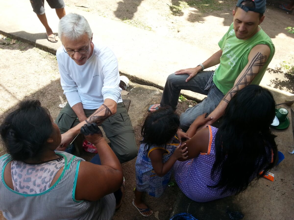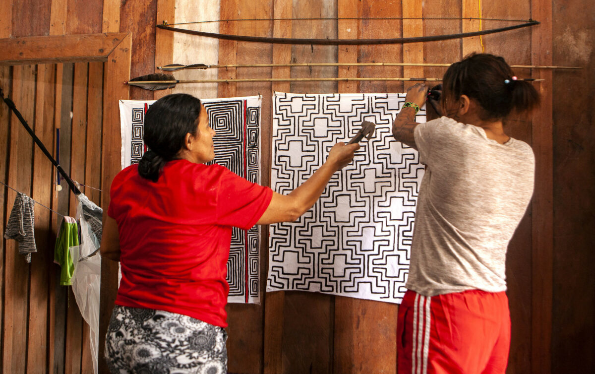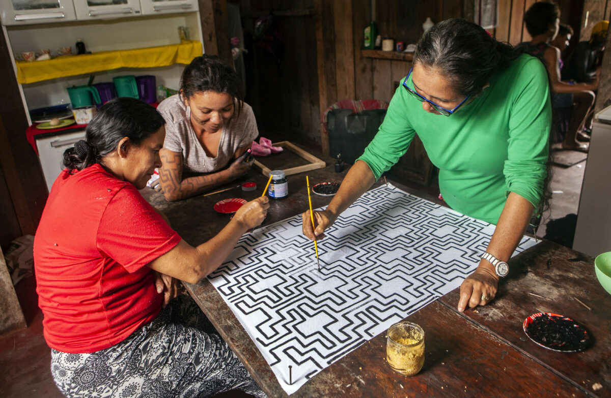 Colaboradores da Mercur e da a Bossapack se deslocaram até as aldeias de Irirí e Tukajá para realizar oficinas de tecido encauchado com os povos indígenas.
