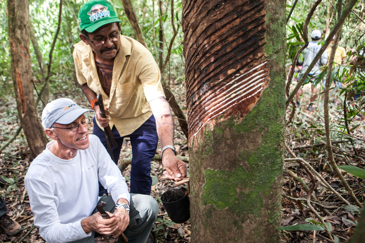 Quando iniciamos nossas atividades, em 1924, a maior parte da borracha utilizada na elaboração dos nossos produtos era proveniente da Amazônia. Com o passar do tempo, o látex, que antes era coletado na floresta, passou a perder lugar para os seringais de cultivo, espalhados em outras regiões do Brasil e inclusive em outros países tropicais. A grande diferença entre essas formas de cultivo e coleta, é que em um mesmo dia, um extrativista na floresta consegue coletar o látex de 150 até 200 Seringueiras, enquanto em um seringal de plantio é possível manejar algo em torno de 900 até 1.200 árvores. Além disso, os seringais cultivados ficam em locais de fácil acesso, favorecendo sua distribuição, diferente da produção feita pelos povos da floresta, que podem estar a dias de distância da cidade mais próxima. Tudo isso fez com que a borracha nativa da Amazônia fosse ficando esquecida e perdendo o espaço que havia conquistado no cenário internacional, principalmente nos primeiros anos do século XIX.