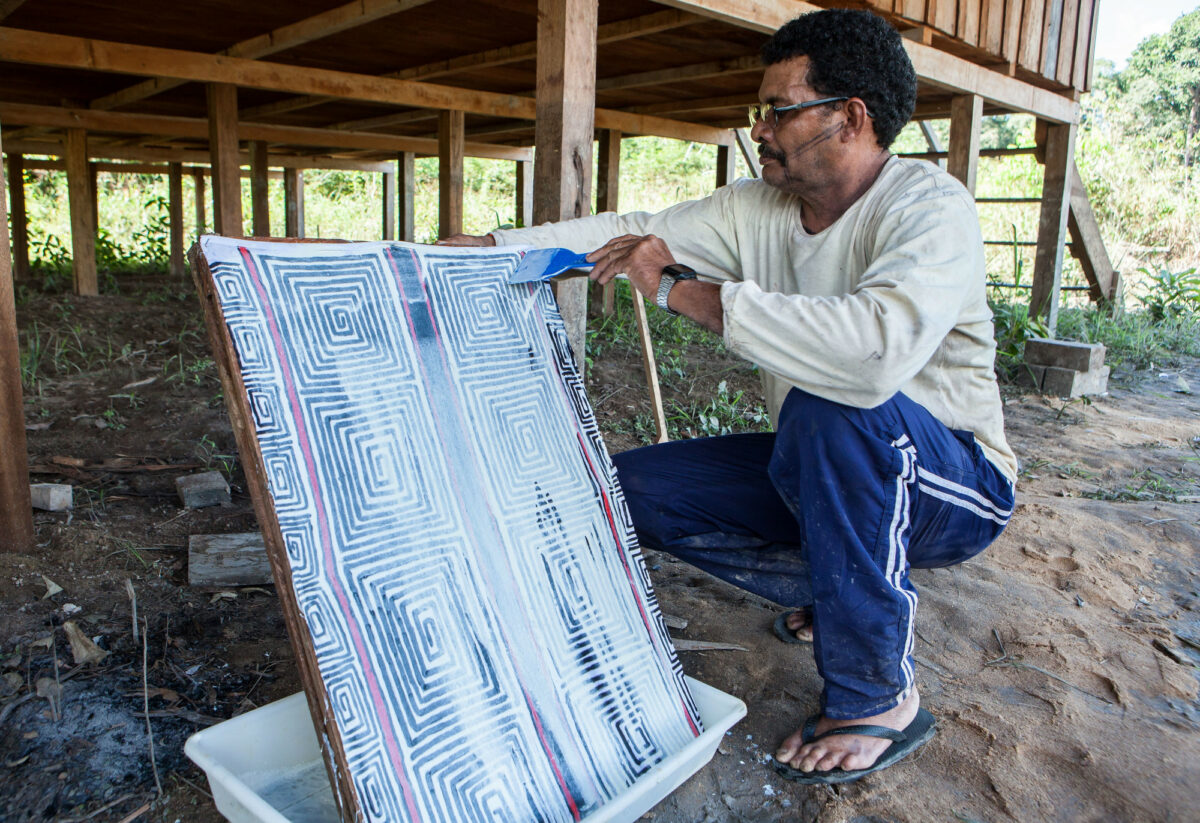 A partir das visitas às comunidades, foram identificadas práticas e conhecimentos das populações locais em relação ao uso do látex que poderiam ser incorporadas ao desenvolvimento de novos produtos. Neste ano, iniciamos pesquisas junto aos indígenas sobre o tecido encauchado e como essa tecnologia poderia ser aprimorada e aplicada a algum recurso.